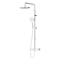 Устройство: душевая система • Смеситель: термостатический • Ручной душ (душевая лейка): размер 120 мм, настройки 1 шт • Верхний душ (тропический): размер 230 мм, настройки 1 шт • Комплектация: ручной душ, верхний душ, смеситель, стойка, шланг, крепление ручного душа