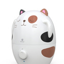 Купили за 1930 руб в райБТ. Пользуемся около месяца. С рождения сына у нас стоял обычный паровой, именно паровой - т.к. в свое время не было времени заморачиваться в отзывах - оставляет налет или нет, плюс был по соц.карте. И вот спустя 2 года нас его бульканье заманало и мы решили сменить его на ультразвуковой. Первый восторг, это конечно дизайн, сын его обожает просто, пар идет из ушек. Второй, что он достаточно тихий, особенно по сравнению с паровым. Сам постоянный шум как тихий ноутбук, время от времени побулькивает, но мы привыкли быстро и теперь можем спать со включенным увлажнителем, опять же по сравнению с паровым - это было невозможно! Мощность правда для нас оказалась маловата, НО у нас помимо основного отопления в комнате 13кв.м. всегда включен обогреватель зимой, после прокачки с 20% влажность при закрытой двери повышает до 40%. Паровой же за пару часов даже с приоткрытой дверью мог на 20% в легкую повысить, а с закрытой так и вообще до 60% наувлажнять) Но данная проблема нам теперь не актуальна, ибо он может работать теперь и ночью. Хватает до 8 часов бака. Луж нет, при замене ну да может прокапать чуть-чуть (капли, не пол стакана))) воды из-за переворотов, у нас просто платок рядом всегда. Заливать просто: снял декоративную верхнюю половину котика, поднял и перевернул бак, отвинтил крышку, залил в отверстие воды и в обратном порядке) Кому важно - декоративная часть никак не крепится. И да, голубая кнопка и правда яркая, но ничего не заклеиваем, просто на ночь кота поворачиваем к кровати попой и все, получается мягкий голубой свет как от светильника в розетке)