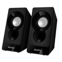 Звуковая схема: 2.0 • Суммарная мощность (RMS): 6 Вт • Материал корпуса колонок: пластик • Частотный диапазон: 100 Гц - 20 КГц • Линейный вход: стерео (mini-jack 3.5мм) • Расположение элементов управления: задняя панель • Количество полос фронтальных колонок: 1 • Питание: от порта USB • Размеры фронтальных колонок (ШxВxГ): 76x150x115 мм • Вес фронтальной колоноки: 0.46 кг • Цвет: черный
