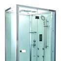 Закрытая кабина, полностенная, левосторонняя, двери раздвижные, материал поддона: акрил, материал стенок: стекло, турецкая баня, тропический душ, вертикальный гидромассаж, габариты (ШхВхД): 90x220x120 см