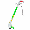 Двигатель: электрический, тип триммера: переносной, мощность электродвигателя: 300 Вт, режущий элемент триммера: леска, ширина скашивания: 22 см, конструкция штанги: прямая, количество колес: нет